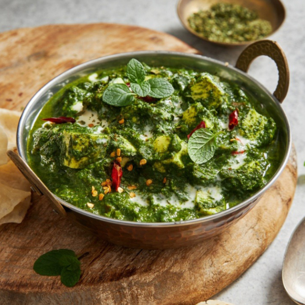 Palak Paneer is a classic Indian dish that showcases paneer (Indian cottage cheese) in a vibrant spinach gravy. The spinach is blanched, pureed, and cooked with a blend of spices, creating a creamy texture. Cubes of paneer are gently folded into the sauce, allowing them to soak in the flavors. Best served with naan or rice, this dish is a delicious way to enjoy leafy greens while satisfying your taste buds.